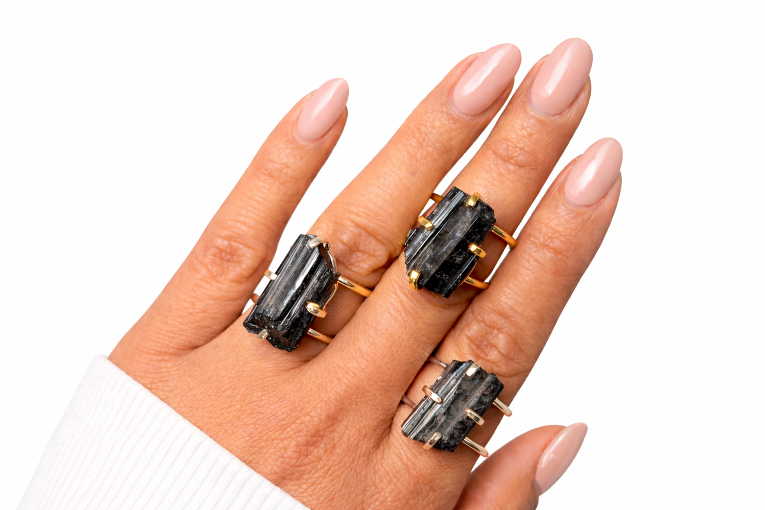 Unique: 100% natural Black Tourmaline – each ring is one of a kind, with natural variations in texture and tone